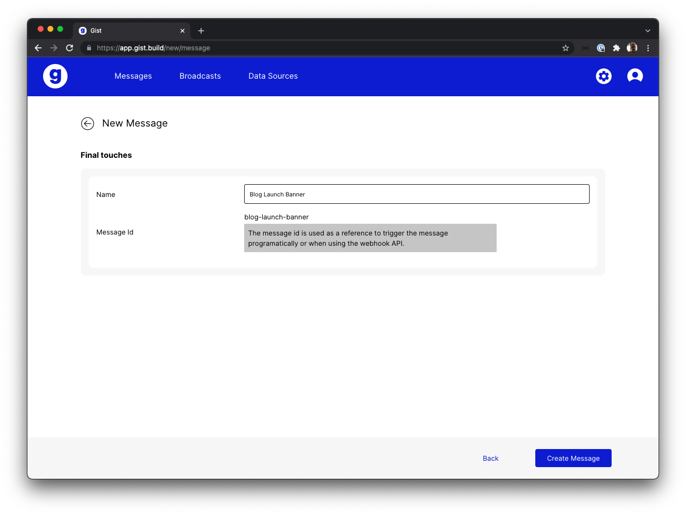 We typed in the name and selected the newly created message, chose the position, selected the topic, and set the start/end date of the campaign.