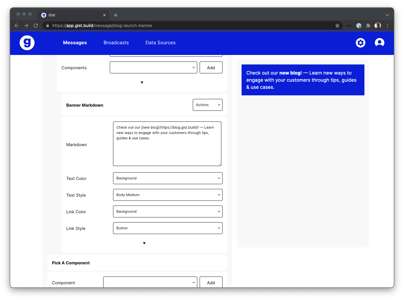 Scroll down to the Banner Markdown component and edit the markdown text.